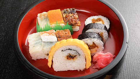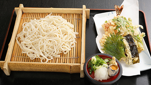 あっさりした更科蕎麦(白蕎麦)と、旨み豊かなウナギの箱寿司を名物にしています。